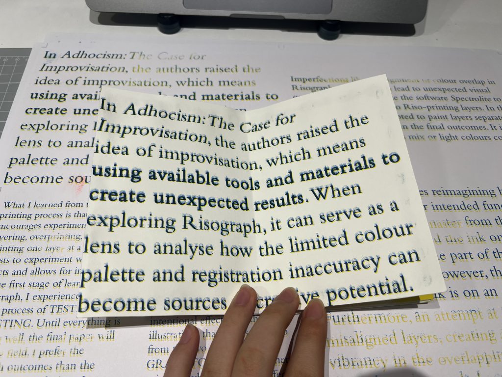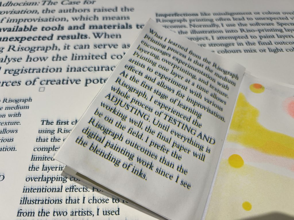 In Adhocism: The Case for Improvisation (Jencks and Silver, 2013), the authors raised the idea of improvisation, which means using available tools and materials to create unexpected results. When exploring Risograph, it can serve as a lens to analyse how the limited colour palette and registration inaccuracy can become sources of creative potential.