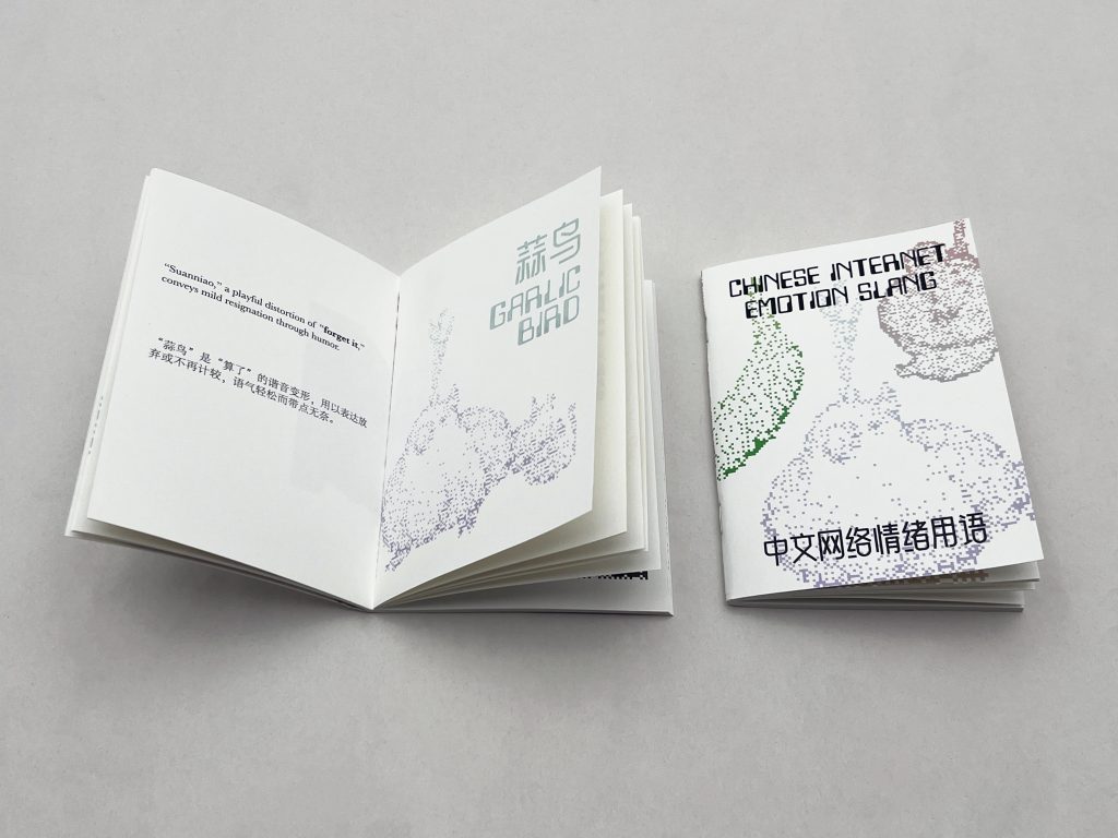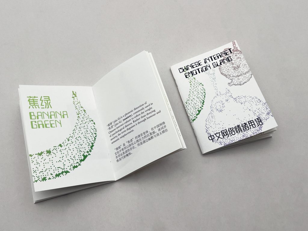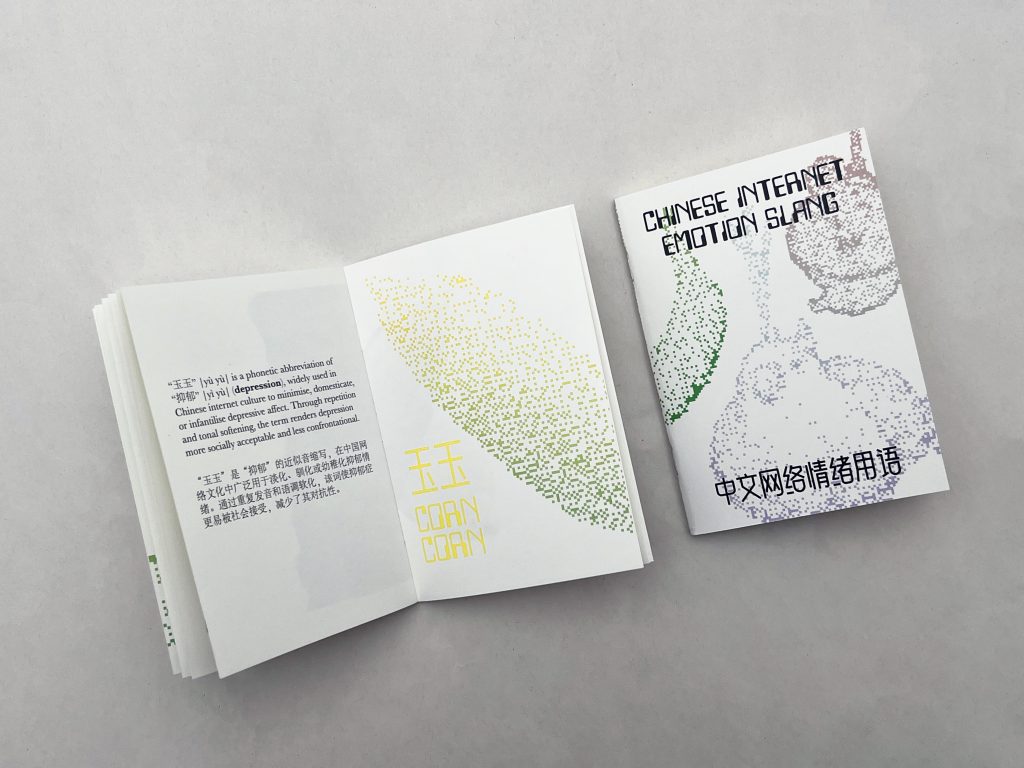 During the development process, I realised that these expressions form a much wider and constantly changing vocabulary. The zine therefore became a starting point for a larger project. This dictionary expands the collection and reorganises it into clearer entries, combining linguistic explanation with cultural context. By documenting these words, the project aims to record a specific moment in contemporary Chinese internet culture and to reflect on how language evolves to express emotional life in digital environments.